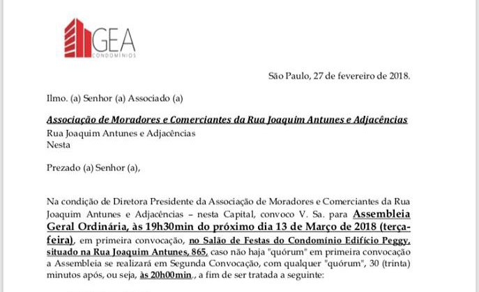 Rua Joaquim Antunes, 865 A, Pinheiros São Paulo-SP – CEP: 05415-012.