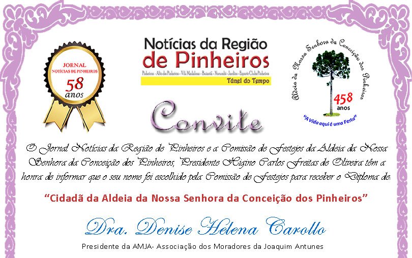 No evento para comemorar os 458 anos da Aldeia de Nossa Senhora dos Pinheiros, serão
